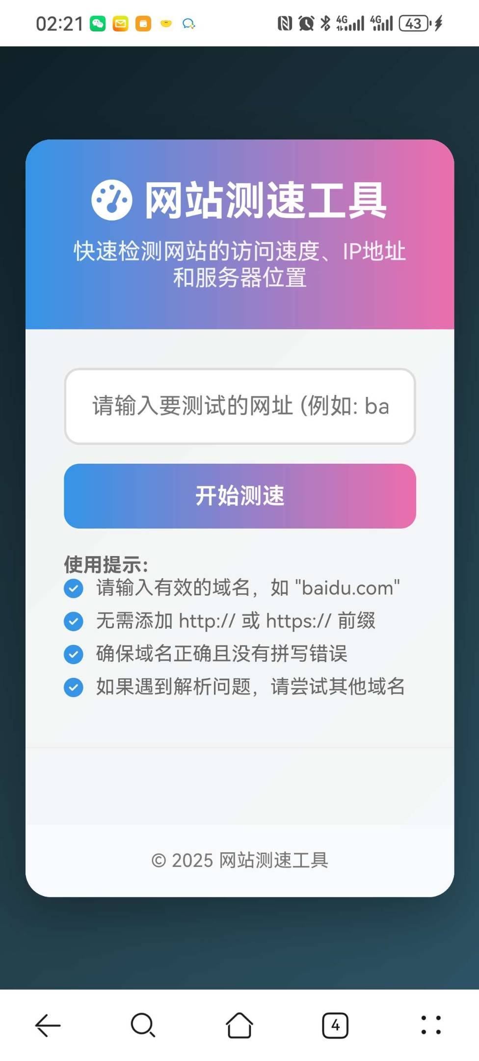 · ⚡ 毫秒级测速:精准测量网站延迟,提供最大和平均延迟数据